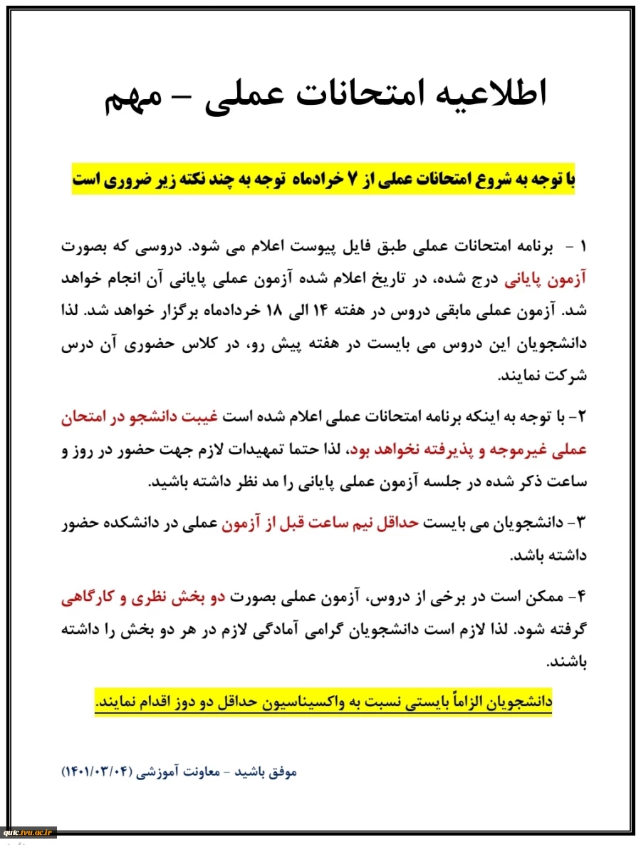 اطلاعیه مهم و فوری امتحانات عملی؛ 2