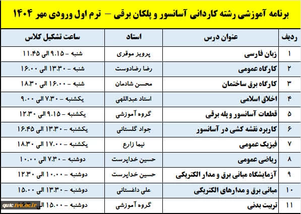 امتیاز دهید : اطلاعیه واحد آموزش - ویژه دانشجویان ترم اول پسران - ورودی مهر ۱۴۰۴ 6 شنبه 19 مهر 1404 ساعت 10:37