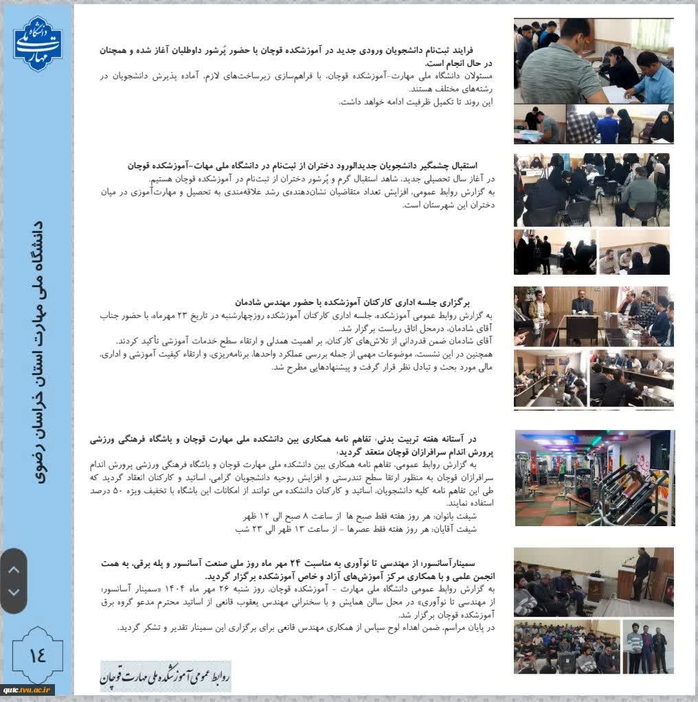 امتیاز دهید : خبرنامه مهرماه 1404 دانشگاه ملی مهارت استان خراسان رضوی منتشر شد 2 سهشنبه 4 آذر 1404 ساعت 9:38