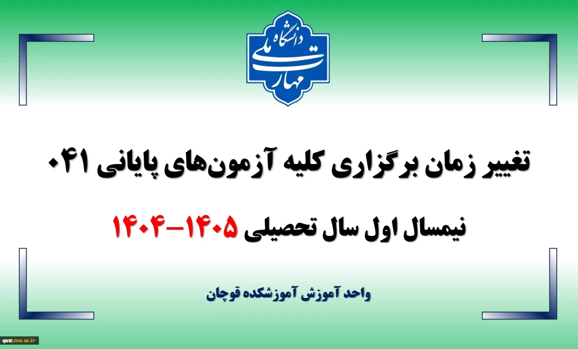 امتیاز دهید : اطلاعیه تغییر تاریخ برگزاری کلیه دروس نظری و عملی نیمسال 041 2 سهشنبه 23 دی 1404 ساعت 11:54